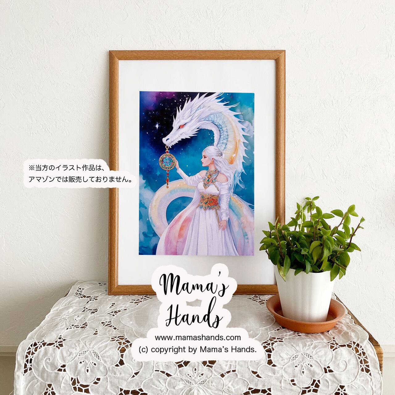 A4 ポスター モダンな 瀬織津姫と白龍 龍使い 龍女の スピリチュアル 開運 水彩画 イラスト アート