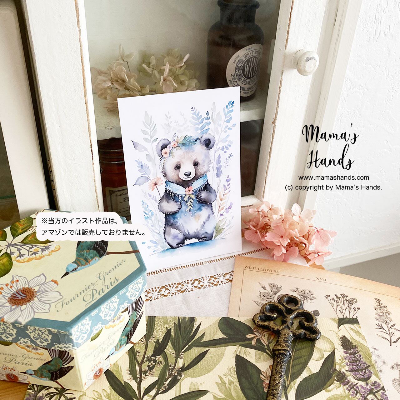 ⭐️イタチ アルパカ くま 動物 自然 イラスト アート 水彩画 ハガキ ポストカード 3枚 セットです。