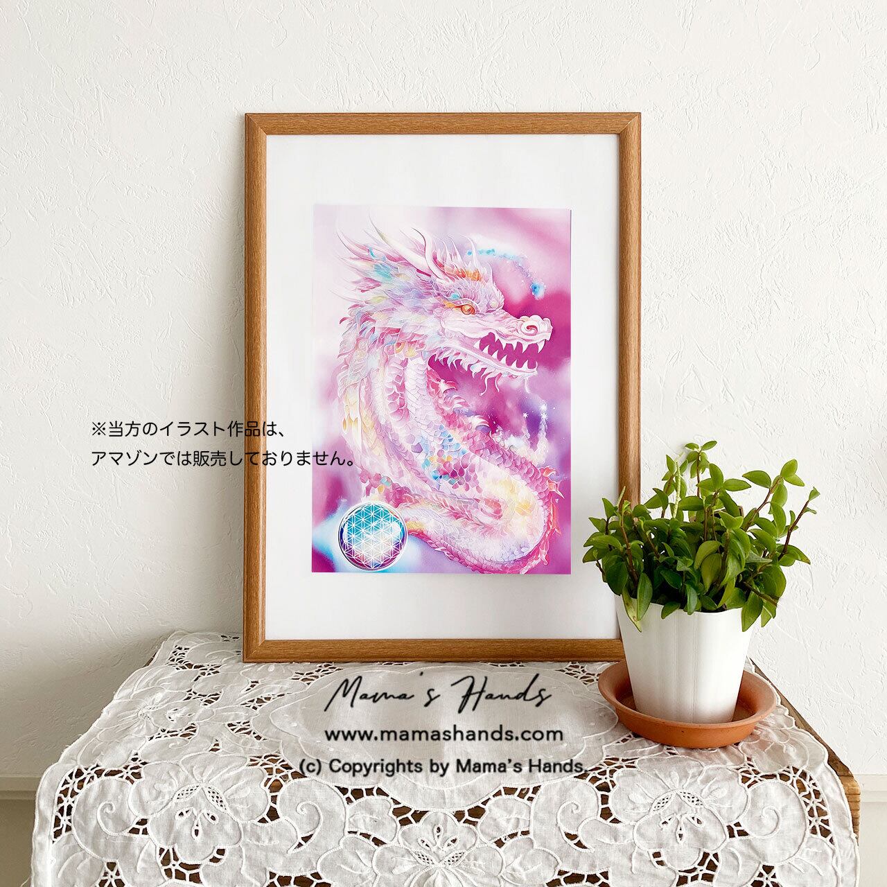 ⭐️A4 ポスター 桃龍とフラワーオブライフ 宝玉 龍神 エネルギー ホット ピンク 水彩画 イラスト アートです♪