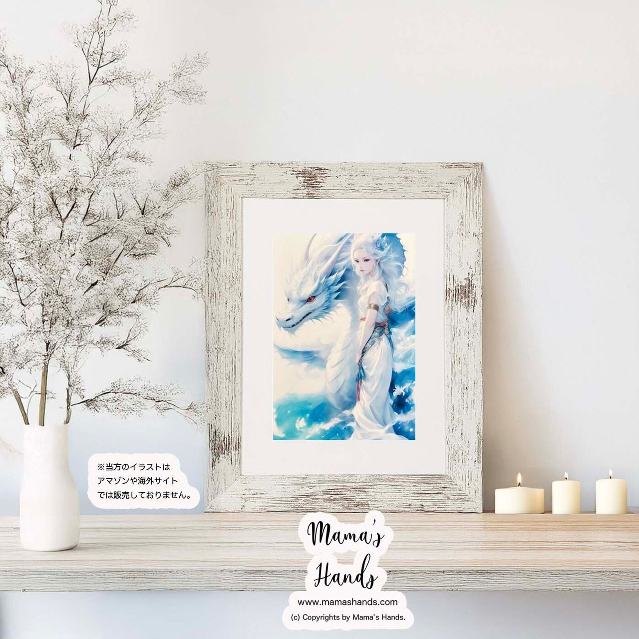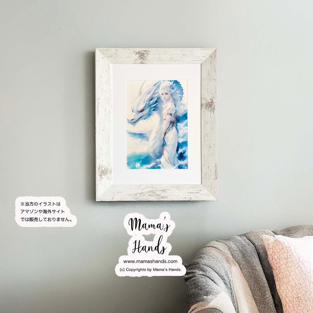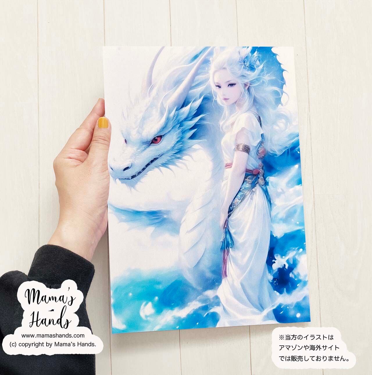 ⭐️《瀬織津姫に仕える 白龍》☘️A4 ポスター 龍神 龍 日本神話 開運 龍女 水神 海神 イラスト アートです♪::::3点売れました::::