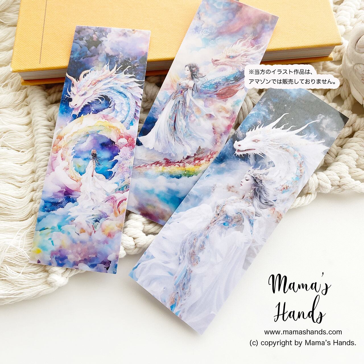 ⭐️《しおり 3枚》☘️龍と女性のおとぎ話 日本神話 読書 水彩画 イラスト アート |プラスチック製です♪ ::::5点売れました::::