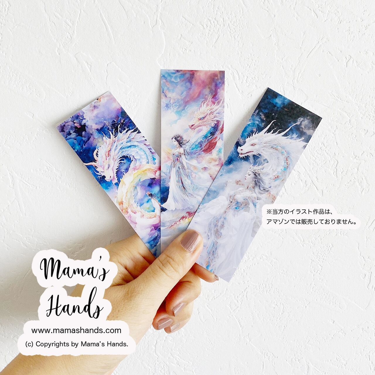 ⭐️5点売れました⭐️《しおり 3枚》☘️龍と女性のおとぎ話 日本神話 読書 水彩画 イラスト アート |プラスチック製