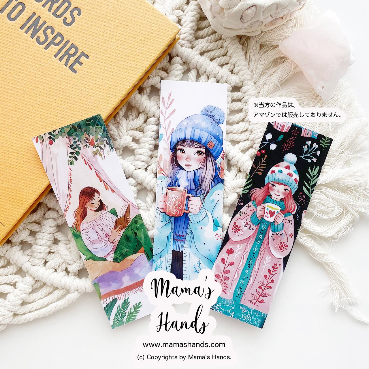⭐️《しおり 3枚》☘️可愛い コーヒーと女の子 読書 イラスト アート|プラスチック製です♪
