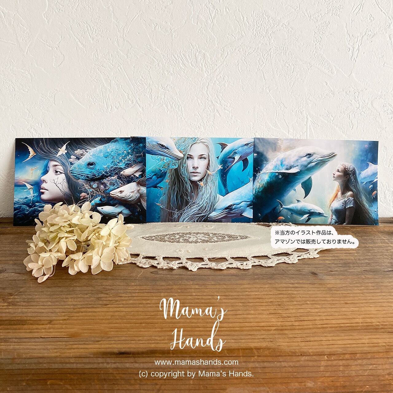 新 イルカ と 女性 レムリア 自然 スピリチュアル イラスト アート 3枚 ハガキ ポストカード セット♪