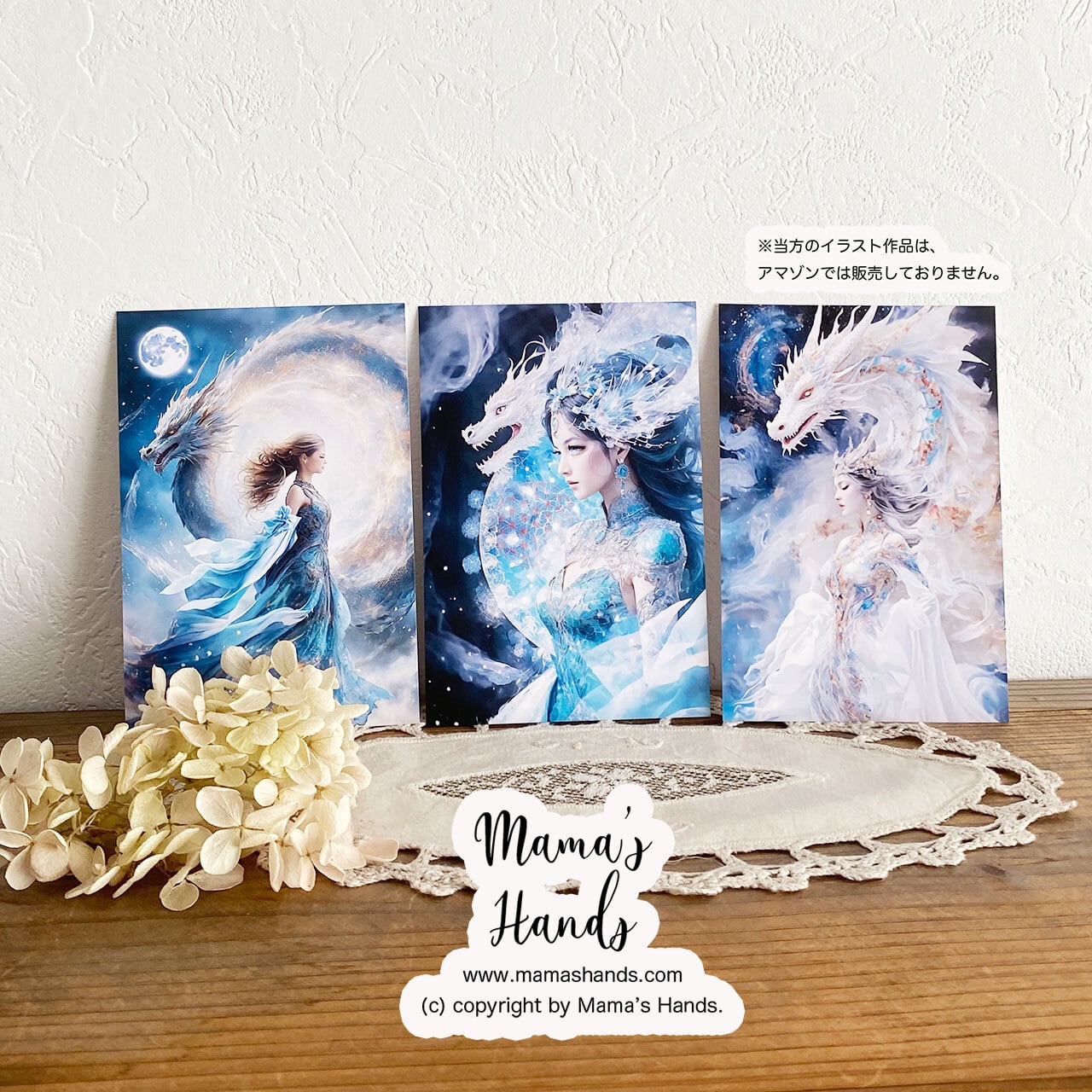 ⭐️《龍と共に舞う女神》瀬織津姫 龍女 青龍 白龍 パワフルなイラスト アート ハガキ ポストカード 3枚です。::::5点売れました::::