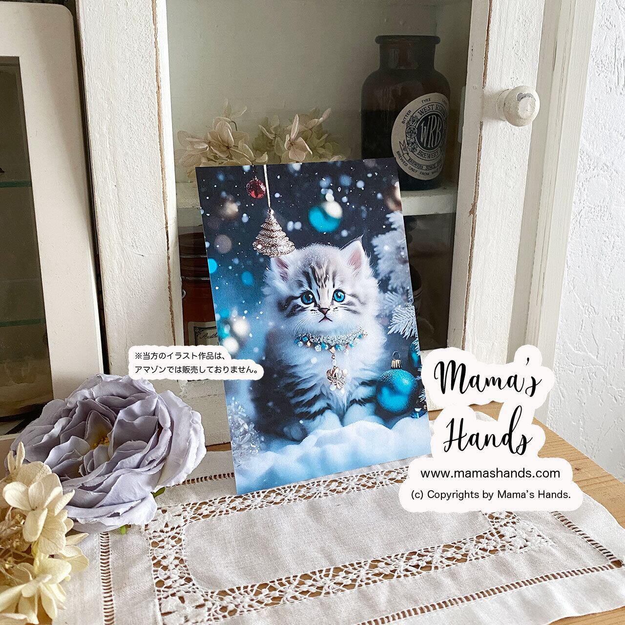 ⭐️《猫とクリスマス》☘️可愛い ねこ ネコ サンタ ブルー系 イラスト アート 3枚 メッセージカード セットです♪