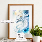 ⭐️《黄金の月と白龍》☘️A4 ポスター 和と幻想世界の龍神 龍 イラスト アートです♪::::3点売れました::::