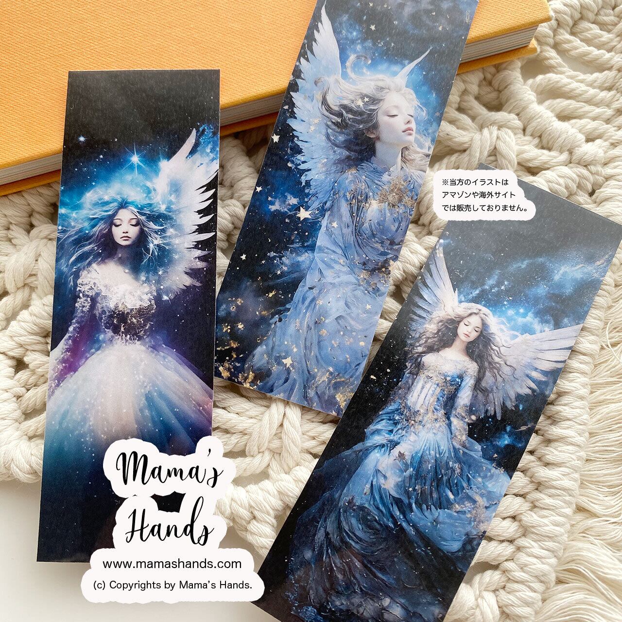 ⭐️《しおり 3枚》☘️夜空に浮かぶ キラキラ 女性 天使 しおり 読書 イラスト アート |プラスチック製です♪