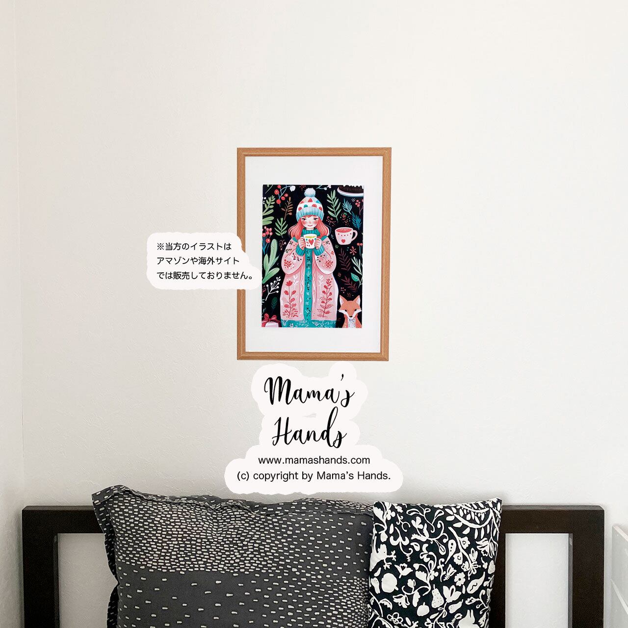 A4 ポスター おうちカフェ コーヒー 女の子 キツネ ボタニカル イラスト アート