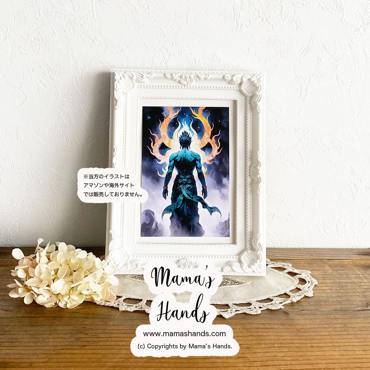 ⭐️不動明王 炎 刀 縄 開運 イラスト アート 3枚 ハガキ ポストカード セットです。
