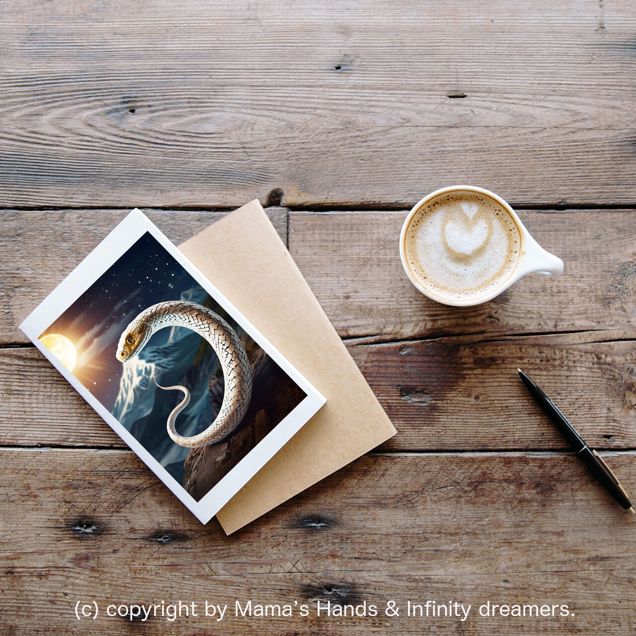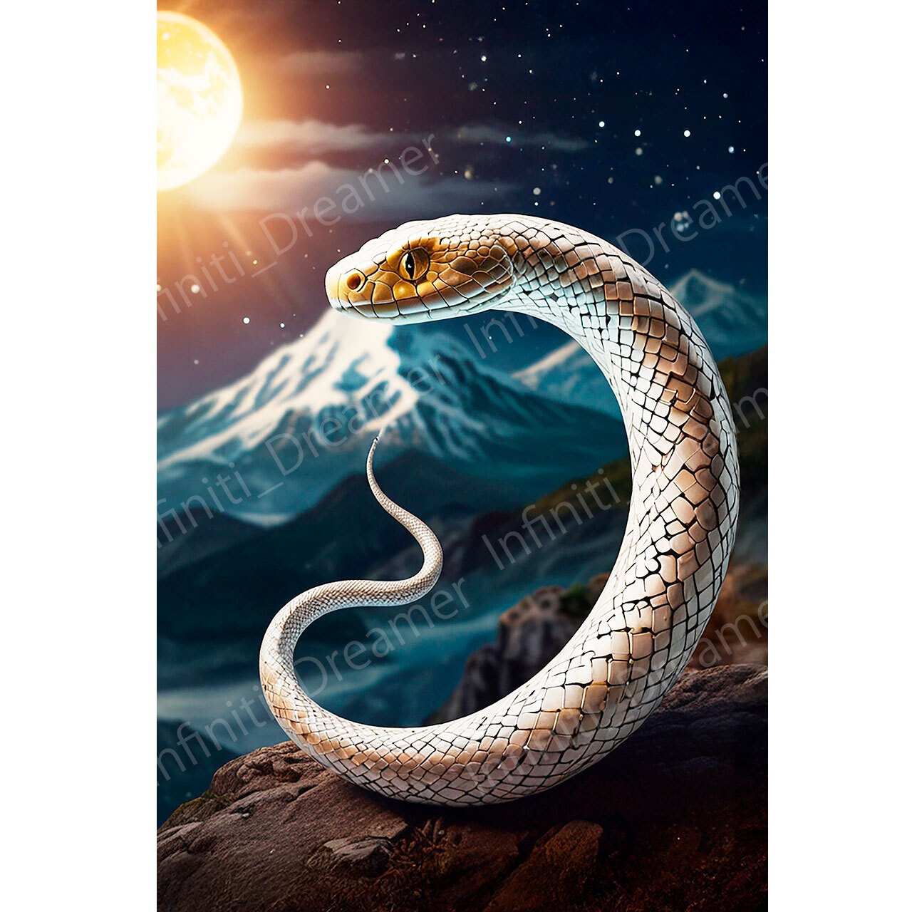 神秘的 2025 巳年 白蛇 月夜 山 ヘビ へび 開運 イラスト アート (デジタルコンテンツ ダウンロード販売)