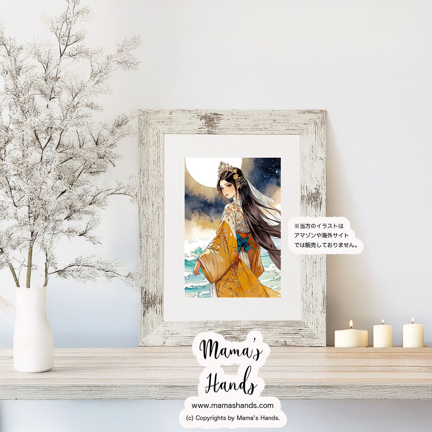 ⭐️A4 ポスター 海神 豊玉姫 水神 瀬織津姫 水彩画 日本神話 イラスト アートです♪