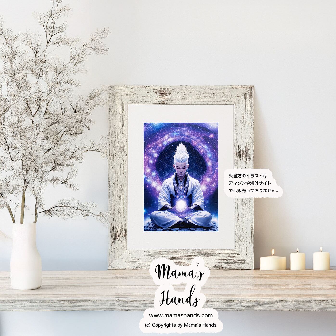 A4 ポスター 五次元 瞑想 ヨガ 男性 サイバー モンク 僧侶 未来人 神聖幾何学 開運 イラスト アート