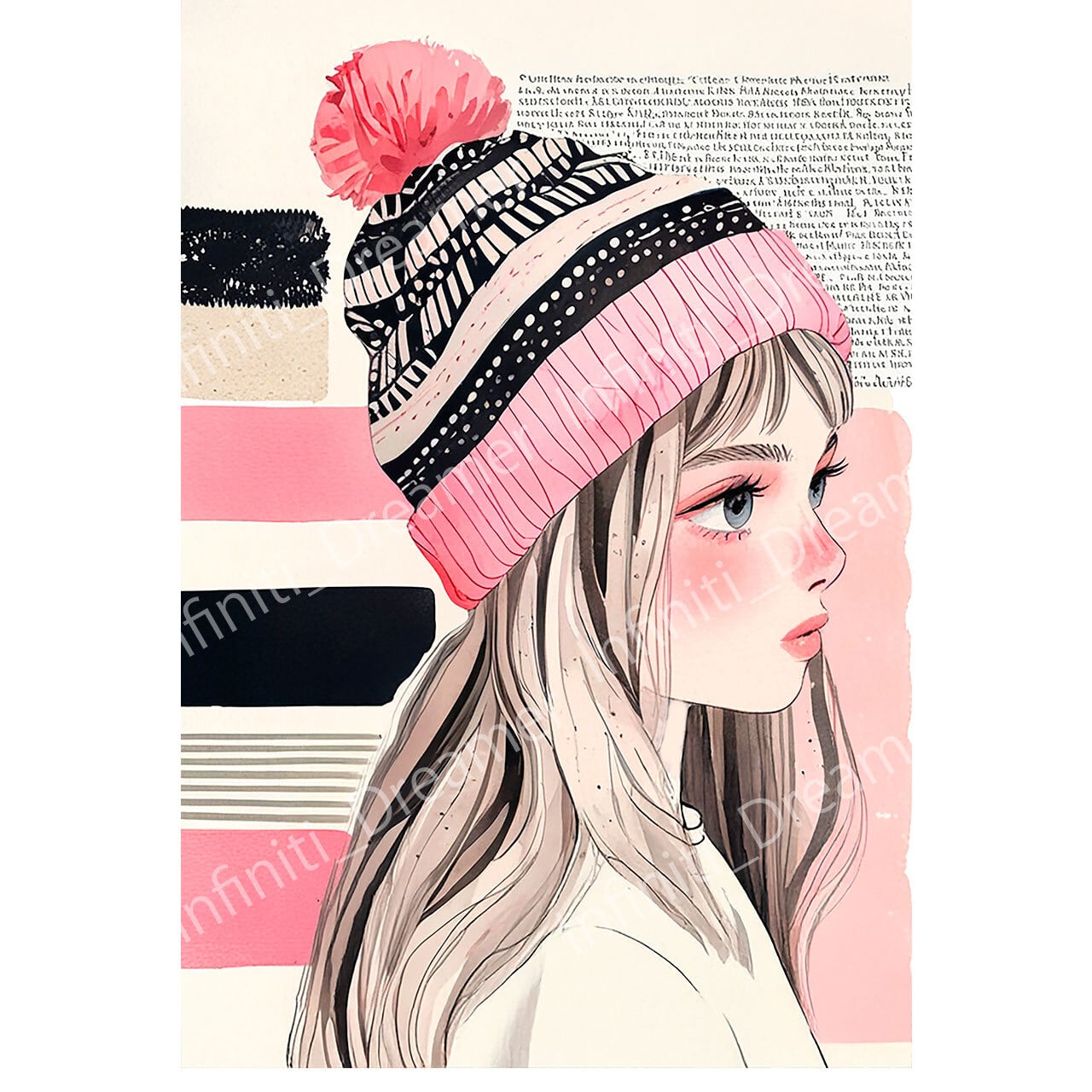 ⭐️黒とピンクのボーダーのニット帽を被った女の子 イラスト(デジタルコンテンツ ダウンロード販売)です♪