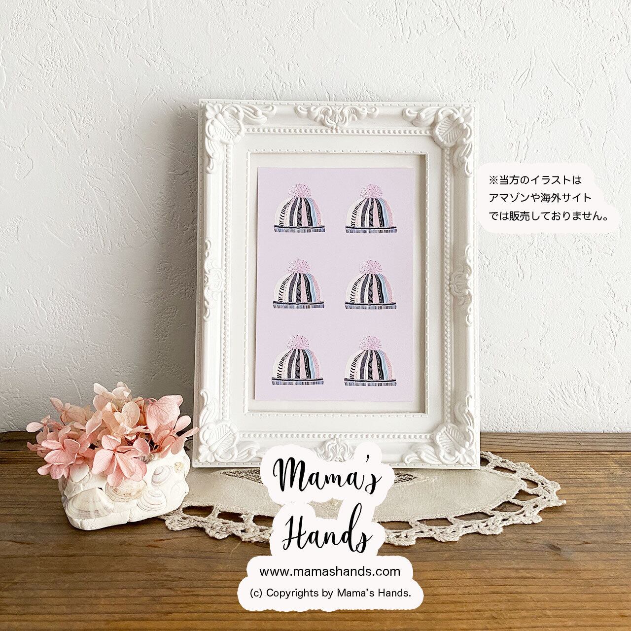 可愛い パステル ピンク ニット帽 イラスト アート 2枚 ハガキ ポストカード セット