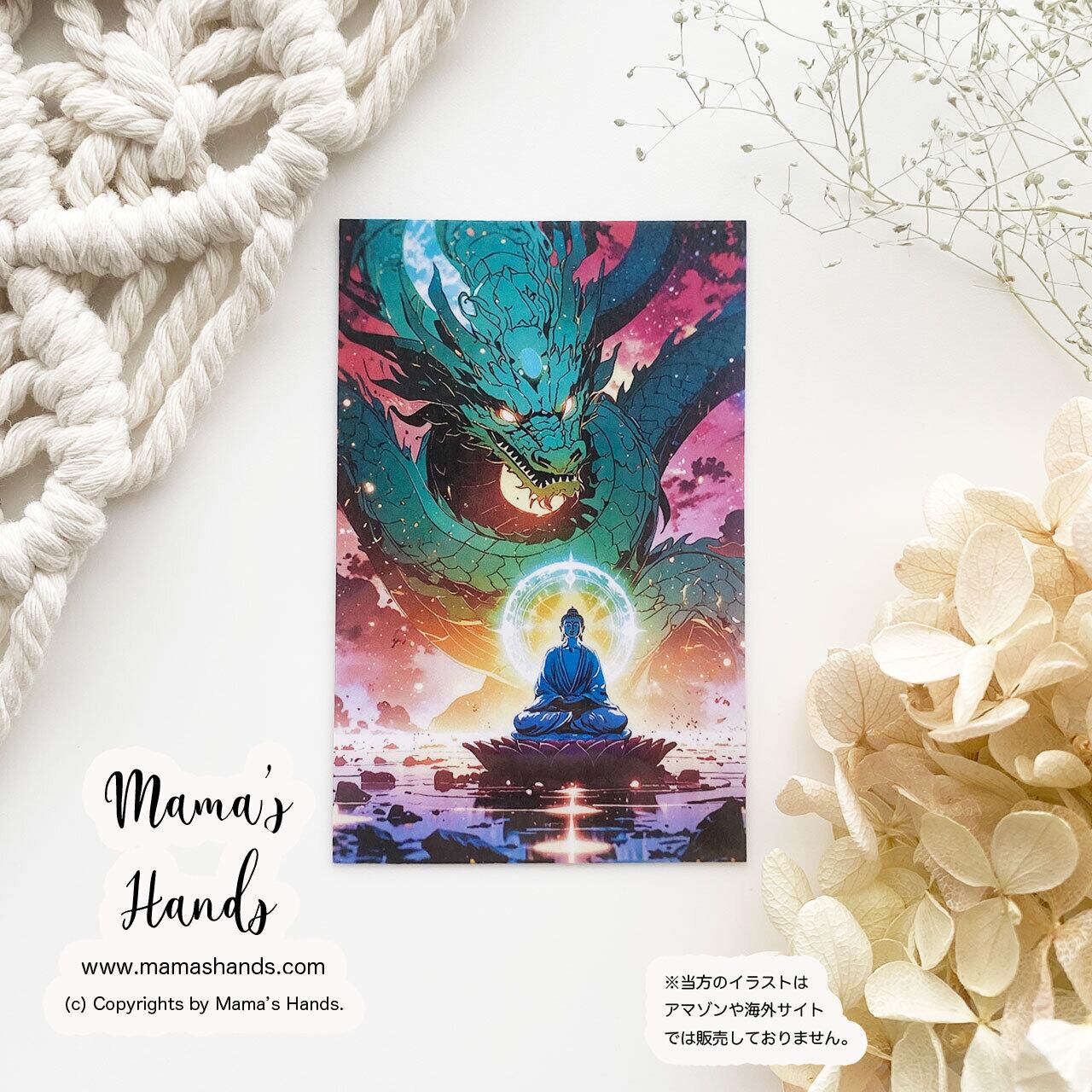 ⭐️3点売れました⭐️《釈迦と緑龍》☘️ 神秘的な 龍 龍神 神聖幾何学 スマホのクリアケースに入る アート カード プラスチック製